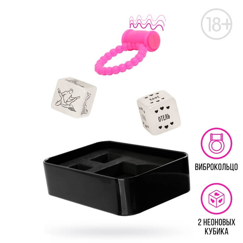 Как пользоваться кубиками? Очень просто! Всего в комплекте их два: один подскажет, как заняться сексом (в какой позе), а второй — где именно нужно это сделать. Бросайте кубики, получайте задание и наслаждайтесь друг другом! В комплекте также есть виброкольцо, которое можно использовать во время игр.