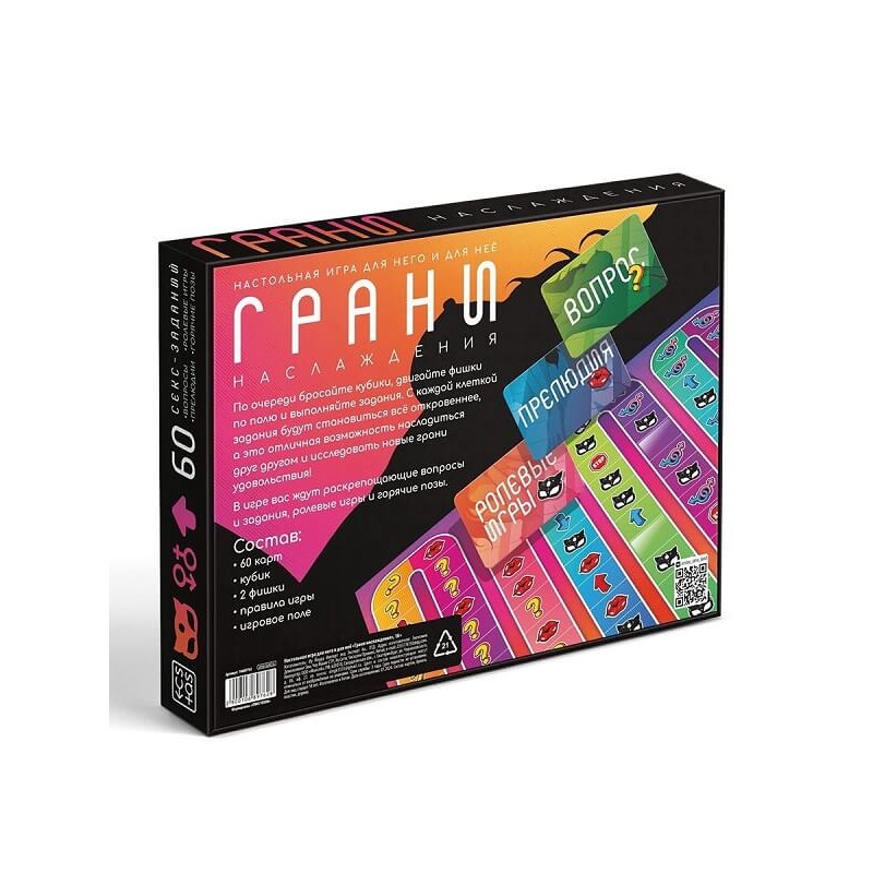 Настольная игра для пар «Грани наслаждения» – это шанс погрузиться в мир новых ощущений, узнать друг друга с иной стороны и открыть скрытые грани вашей близости.
