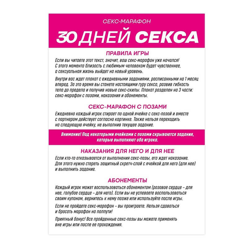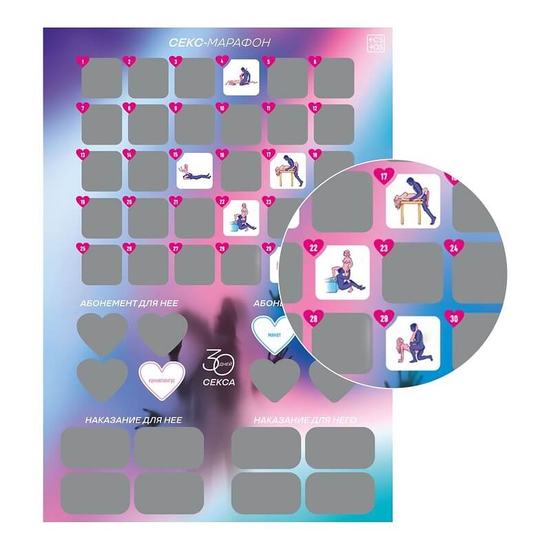 Плакат для пар со скретч-слоем «30 дней секса», А3